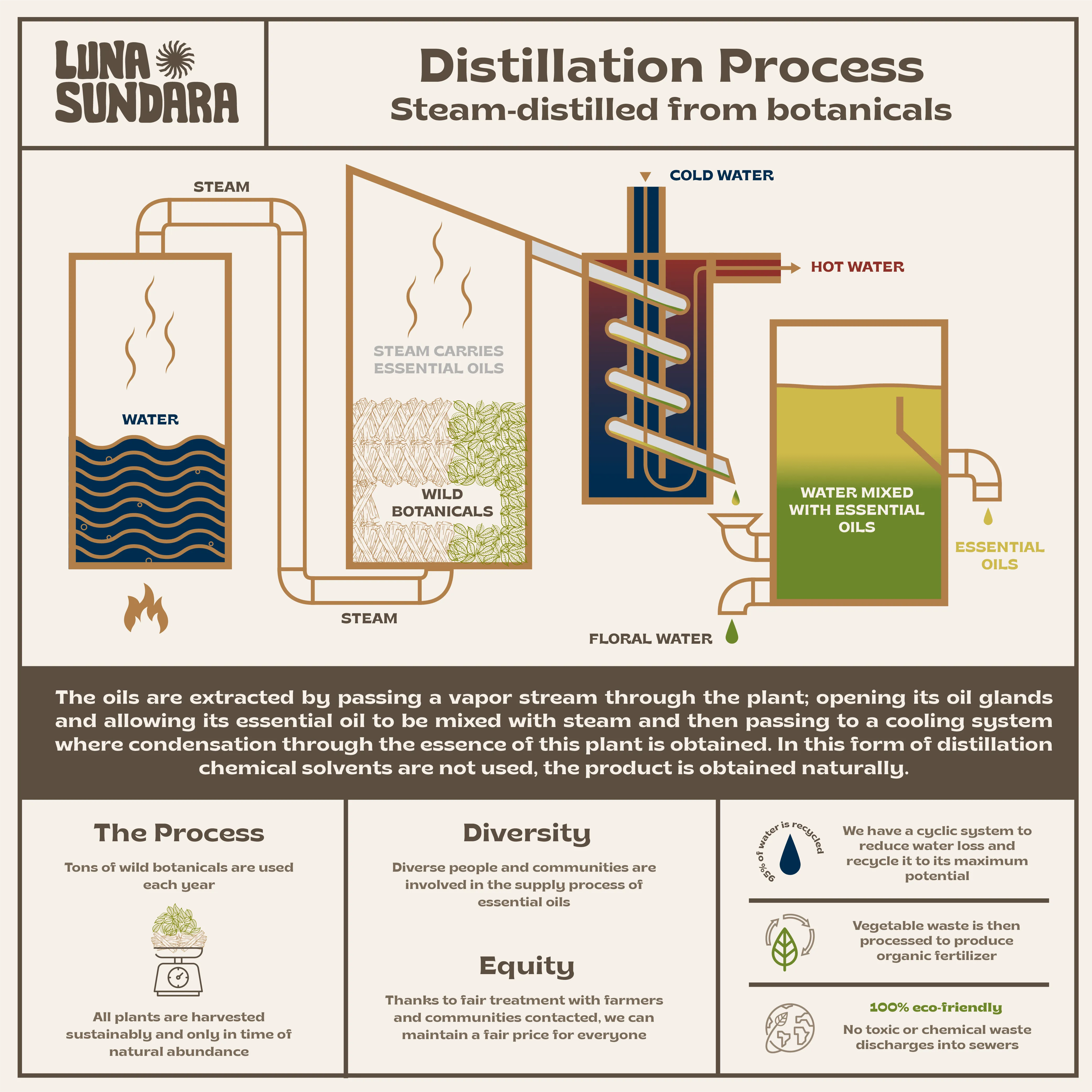 在厄瓜多尔可持续收穫。 Luna Sundara 与着名的厄瓜多尔化学家合作蒸馏我们的油。我们的供应商採用道德、公平贸易和永续的做法。